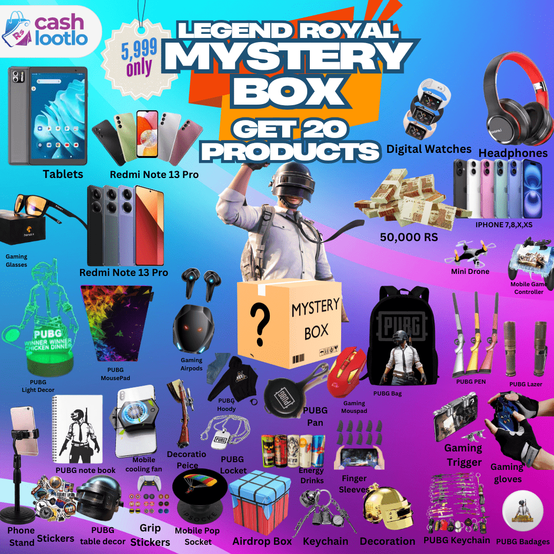Gear up for victory with the PUBG Battle Royal Mystery Box by Cash Lootlo, the ultimate treasure chest for gaming enthusiasts! Loaded with exclusive PUBG-themed items, gaming gear, and collectibles, this box takes your gaming experience to the next level. And that’s not all—your box also gives you the chance to win grand prizes, including gaming headsets, controllers, or even a gaming console.